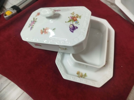 Przedmiotem sprzedaży jest piękna maselnica Rosenthal Maria Sommerstrauss, maselnica w bardzo dobrym stanie, wymiary : wys. 9 cm, szer. 21 / 14,5 cm. Sygnatura stosowana po 1978 r. Polecamy !