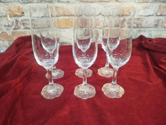 Przedmiotem sprzedazy są kieliszki do szmpana z serii Rosenthal Monbijou, stan bardzo dobry, wys. 20,5 cm, średnica wlewu 4 cm. Sygnatura zmyta..Polecamy ! ( 8)