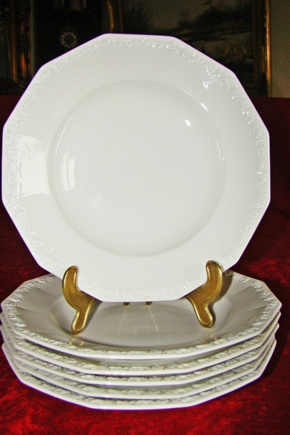 Przedmiotem sprzedaży jest 6 talerzy głębokich Rosenthal Biała Maria, stan bardzo dobry , sygnatura używana po 1936 r, 4 talerze z rzymską V, 2 bez ,wymiary : średnica po przekątnej 25 cm. Polecamy ! (nr. 1)