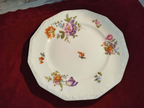 Przedmiotem sprzedaży jest talerz obiadowy płaski Rosenthal Maria Sommerstrauss, stan talerza bardzo dobry- ślady użytkowania- ryski, średnica 25 cm mierzona po przekątnej, sygnatura stosowana po 1936 r. Polecamy !