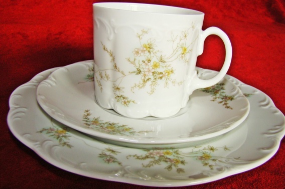Przedmiotem sprzedaży jest piękny zestaw śniadaniowy Rosenthal Monbijou z serii Grune Ranke, stan bardzo dobry, porcelana biała, wymiary : średnica talerza dużego 19,8 cm, małego 15,3 cm, filiżanki 7,3 cm, wys. 6,8 cm. Polecamy !